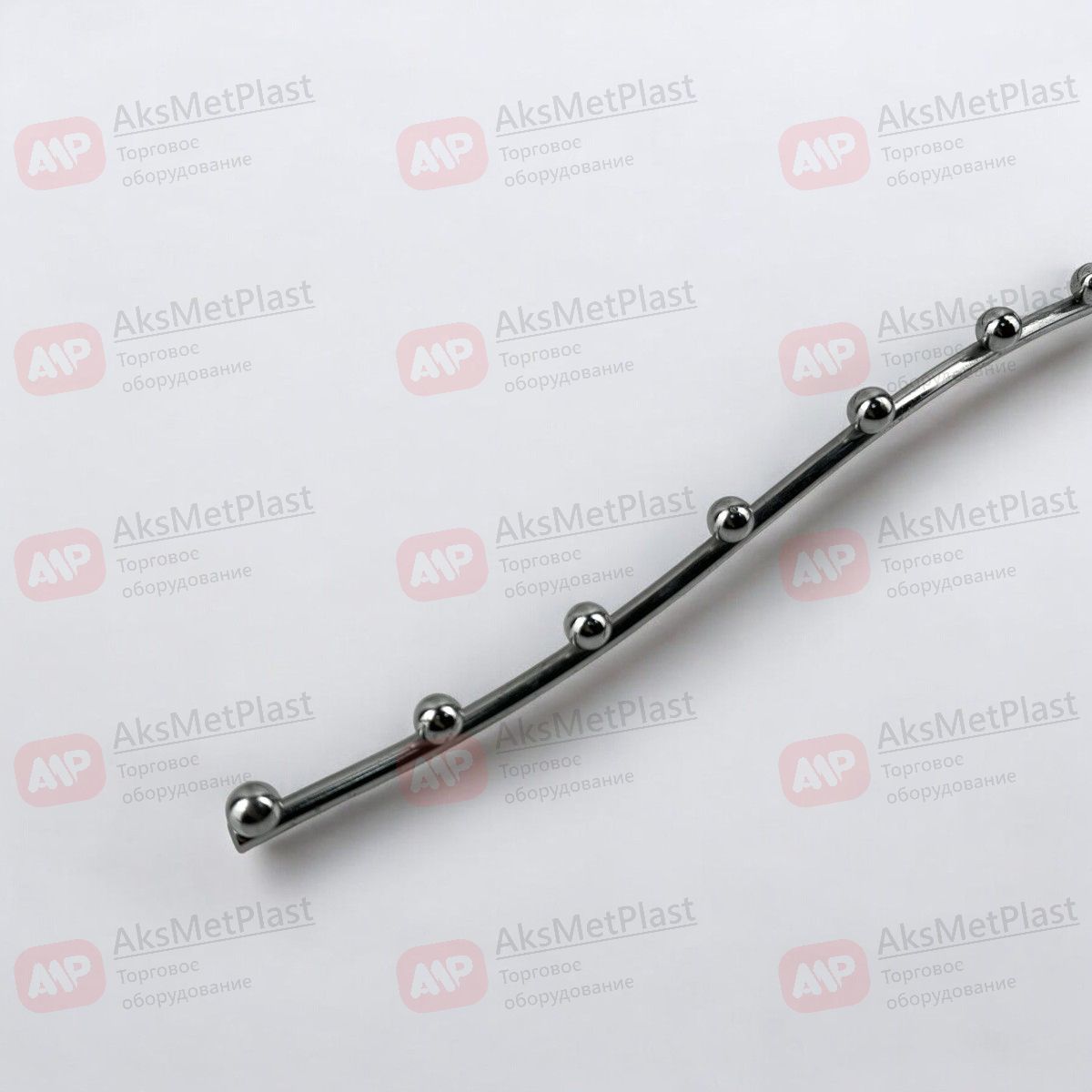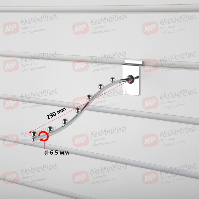 Профессиональный наклонный крючок К135 — идеальное решение для организации выкладки на перфопанелях (экономпанелях) в магазинах одежды, аксессуаров, хозтоваров и упаковки. Изогнутая форма и наличие семи декоративных/фиксирующих шариков предотвращают соскальзывание легких изделий (шапки, шарфы, сумки, игрушки) и позволяют четко зонировать товарные позиции.