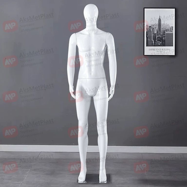 Стильный мужской манекен MN99B1 в классической белой глянцевой отделке. Безликая модель идеально подходит для демонстрации одежды, аксессуаров и головных уборов, не отвлекая внимание посетителей от товара. Высокий рост (193 см) создает эффектную вытянутую фигуру, соответствующую современным стандартам моды. Прочный пластик и устойчивая платформа обеспечивают долгий срок службы даже в зонах с высокой проходимостью. Идеальное решение для бутиков мужской одежды, торговых центров и выставочных залов Москвы.