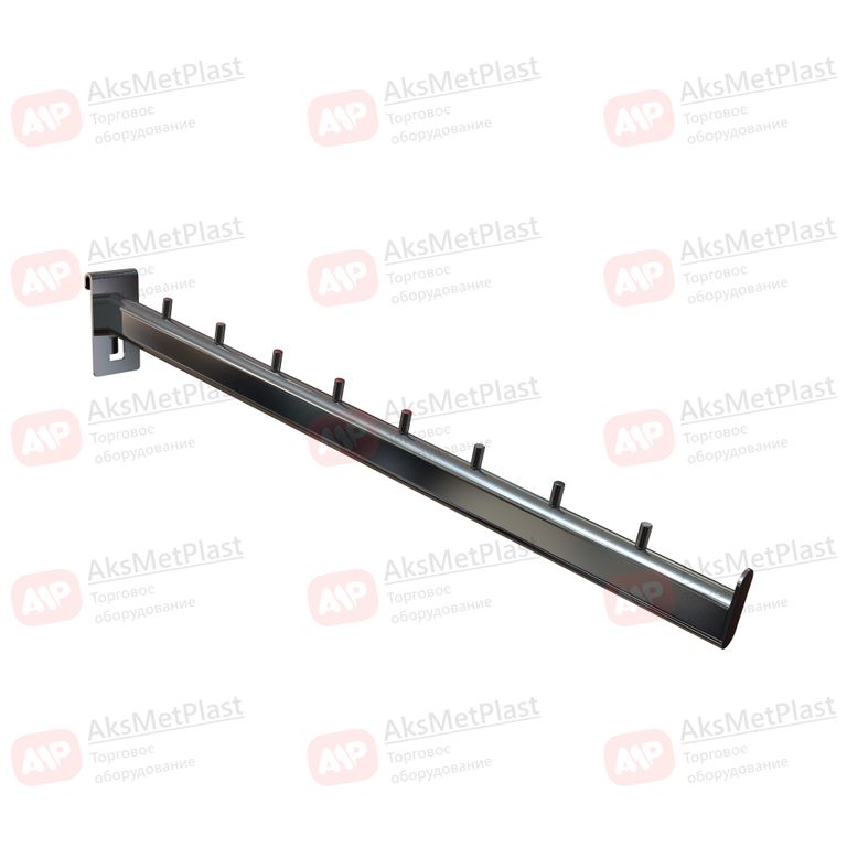 Профессиональный наклонный кронштейн Р648 предназначен для эффективной выкладки товаров в упаковке на перфорированных панелях (торговых решетках). Металлическая конструкция из овальной трубы 30х15 мм с хромированным покрытием обеспечивает высокую нагрузку и презентабельный внешний вид. Длина 480 мм и наличие 8 штырьков позволяют компактно разместить вешалки с товаром или крупногабаритную упаковку.