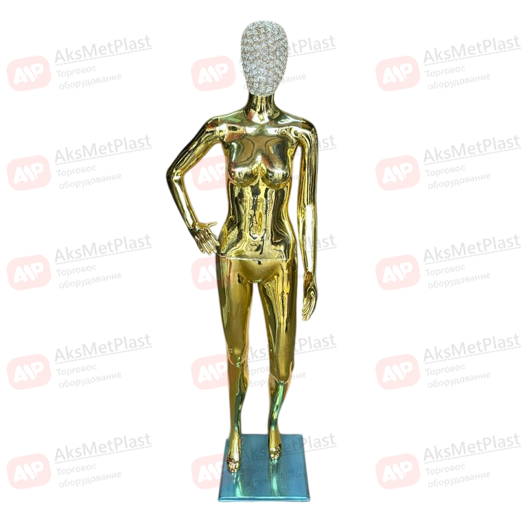 · Уникальная деталь — «Драгоценная» голова: Верхняя часть манекена выполнена в виде арт-объекта из хромированной проволоки, стилизованной под филигранное плетение. Проволочная конструкция декорирована крупными инкрустациями, имитирующими драгоценные камни. Эта деталь создает эффект дорогого украшения, приковывая взгляд посетителей к лицу манекена и зоне декольте.